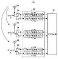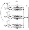 ところが、アダプティブ・アレー・アンテナでは、送受信系統を構成する各素子の特性などにより可逆性が喪失されてしまい、受信時に算出した重み係数を送信時に用いても、送受信の指向性パターンが一致しなくなる。このため、予めアンテナ較正処理として補正値が算出され、補正値により重み係数を補正することで、送受信の指向性パターンが一致される。また、MIMO方式の通信装置でも、空間チャネルの伝達関数と装置内のアナログ部の伝達関数を併せてチャネル行列として認識するので、送信アナログ部と受信アナログ部との間で伝達関数が異なる場合には可逆性が喪失されてしまう。このため、予めアンテナ較正処理が行われ、送受信の指向性パターンが一致される。 However, in an adaptive array antenna, the reversibility is lost due to the characteristics of each element constituting the transmission / reception system, and the directivity pattern of transmission / reception does not match even when the weighting factor calculated at the time of reception is used at the time of transmission. . For this reason, a correction value is calculated in advance as an antenna calibration process, and the directivity patterns of transmission and reception are matched by correcting the weighting coefficient with the correction value. Also, in the MIMO communication device, the transfer function of the spatial channel and the transfer function of the analog unit in the device are recognized together as a channel matrix, so that the transfer function differs between the transmission analog unit and the reception analog unit. Loses reversibility. For this reason, antenna calibration processing is performed in advance, and the directivity patterns of transmission and reception are matched.