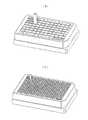 従来、創薬研究等の分野においては、試料を溶解した溶液をマイクロチューブと呼ばれる円筒状容器に封入し、このマイクロチューブを格子状に区画された保管ラックに複数本、例えば、図9(a)に示すように、8行12列で96個に区画された保管ラックに垂直に並び立てて収容し、保管や搬送を行っていた。また、同じ大きさの保管ラックで、より小さいマイクロチューブ、すなわち、超マイクロチューブを収容するために、図9(b)に示すように16行24列で384個の総区画数を有する保管ラックも知られている。(例えば、特許文献1、2参照)。