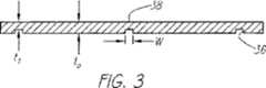 図1B、2、および3に最良に見られるように、複数のスロット36が、シート12に提供され、これらのスロット36は、好ましくは、長手方向軸18に対して実質的に垂直に配向している。スロット36は、減少した厚みt1を規定する、予め決定された深さを有し、この厚みt1は、シート12の初期の厚みt0よりかなり小さい。好ましくは、長手方向コネクタ32は、セットで整列し、各セットが、スロット36によって交差される。従って、長手方向コネクタ32の各々は、好ましくは、長手方向コネクタ32の長さに少なくとも部分的に沿って延びる、幅wを有する、厚み減少領域38を備える。
