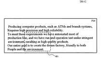 1400、1401は図13における1300、1301と同様であり、1402は1303の英文に対応するリンクデータをアクセスした結果であり、図12における1214のポインタを参照した上で、リンクDB184における924(図9)のリンクデータを取得して当該URLをアクセスした結果が表示されている。ここではアクセスしたURLには”Product manufacture Process”の画像データが格納されていることを想定し、そのデータが画面上に表示されている。  1400 and 1401 are the same as 1300 and 1301 in FIG. 13, and 1402 is the result of accessing link data corresponding to the English text of 1303. After referring to the