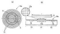 この第1の領域11における格子状の第1の溝12aは、同図(b)に示されるように、第2の領域13の第2の溝14に比べて、溝の深さを深くするとともに、幅を広くし、溝12a内を流動するスラリーの流量を増加させるように構成している。