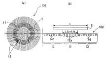 図3は、本発明の実施の形態に係る研磨パッド10bを示す図であり、同図(a)は平面図であり、同図(b)は、その半径方向に沿う拡大した断面図である。