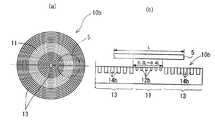他の実施態様においては、前記複数の溝は、同心円状に形成されるとともに、前記断面形状が矩形であり、前記第1の領域における前記溝の幅を、前記第2の領域における前記溝の幅よりも狭くしている。