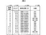 図7は、補正後の類似文書検索結果データ、すなわち補正後検索文書群19の構成の一例を示す図である。データの構成は図4と同一である。図7に示すデータは、図4に示した補正前の検索結果の中で、入力文章の持つ分類C1、C2(図3(b))と共通の分類を持つ文書のスコアに絶対値10を加算し、ソートした結果の一例を示している。図4と図7の結果を比べると、共通の分類を持つ一部の文書の順位が上がっているとともに、共通の分類を持たない一部の文書の順位が下がっている。  FIG. 7 is a diagram showing an example of the configuration of the corrected similar document search result data, that is, the corrected