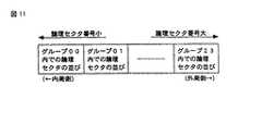 各グループにおいて、ユーザエリアはセクタ番号の小さい方(つまりディスク上で内周側)に配置され、スペアエリアはセクタ番号の大きい方(ディスク上で外周側)に配置される。このセクタ番号の割り当て方は、図4のディスク10上におけるユーザエリアUAとスペアエリアSAとの配置方法に対応する。  In each group, the user area is arranged on the smaller sector number (that is, the inner circumference side on the disk), and the spare area is arranged on the larger sector number (the outer circumference side on the disk). This sector number assignment method corresponds to the arrangement method of the user area UA and the spare area SA on the