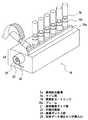 請求項3にかかる発明の穿刺針カートリッジは、請求項1または2に記載の穿刺針カートリッジにおいて、前記基台は、前記複数の穿刺針を一平面内に配置している側面と垂直の側面に、使用済み穿刺針把持機構を有することを特徴とするものであり、これにより、使用済み穿刺針を、容易に、かつ正確に、廃棄処理をすることができる。A puncture needle cartridge according to athird aspect of the present invention is the puncture needle cartridge according to thefirst or second aspect , wherein the base has a side surface perpendicular to a side surface on which the plurality of puncture needles are arranged in one plane., which is characterized by having ause for spent needle gripping mechanism, thereby, the used puncture needle, easily, and accurately, it is possible to discard processing.
