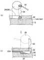 このセットを使用した実験の詳細については、以下に詳述する。図4及び図5は、実験方法の手順を示す断面図である。このうち、図4は、第1液溜め部24及び第2液溜め部26における時系列的な手順を示す。一方、図5(a)は、第1液溜め部24及び第2液溜め部26にサンプル液を供給した実験開始の状態を示し、図5(b)は、第3液溜め部28にサンプル液が到達した実験終了の状態を示す。  Details of experiments using this set are detailed below. 4 and 5 are cross-sectional views showing the procedure of the experimental method. Among these, FIG. 4 shows a time-series procedure in the first