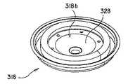 次に、図14及び図15を参照すると、全体を密封組立体300として指示された密封組立体のもう一つの実施形態が示されている。密封組立体318は、内側部分318bが幅の広い開口部が密封組立体300の手元側端部に差し向けられ、幅の狭い開口部が密封組立体300の先端部に差し向けられた円錐形の状態に形成されていることを除き、密封組立体118に類似している。プラズマ重合法により作製されたハイドロシクロシロキサン膜の摩擦減少被膜も又、密封組立体318の表面を被覆するのに利用できる。  Referring now to FIGS. 14 and 15, another embodiment of a sealing assembly designated generally as sealing
