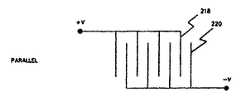 標準的な用例(図3Aを参照)では、例えばマイクロスティミュレータのような複数個のこのような器具100が患者の身体の皮膚12の下に挿入され、同時に外部電源118からの交番磁界154にさらされる。従って、充電回路122によってバッテリ104が充分に充電されたことが一旦判定されると、充電回路122は好適には例えばセンタタップ126を分路させ(またはコイルにコンデンサを追加することによって)コイル116を離調させ、ひいては過充電による充電回路122またはバッテリ104内での熱の発生を最小限にする。このように、外部電源118は交番磁界を介して無限に充電電力を供給し続けることができる。しかし、好適な1実施例では、外部電源は挿入された器具の状態に関する情報を周期的にポーリングし、各々の皮下挿入された器具100からそのバッテリ104が充電されたという状態情報を受けるまで電力の充電を継続する。  In a standard application (see FIG. 3A), a plurality of
