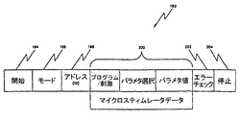 図4は前述のバッテリ給電式器具100と通信するためのメッセージ例の基本的様式を示しており、これらの器具は全て識別記憶装置108内に、好適にはその器具独自のアドレス(ID)を伴って事前構成されて、下記の動作モードの1つ、またはそれ以上で動作するようにされている。すなわち、(1)神経を刺激するため、すなわちマイクロスティミュレータとして、(2)生物学的なパラメタ監視のため、すなわちマイクロセンサとして、および/または、(3)他の皮下挿入器具へと再様式化した後で受信した信号を再送信するため、すなわちマイクロ・トランスポンダとして、である。指令メッセージ192は主として(1)開始部分194(メッセージ開始を示し、かつ送信機と受信機間のビット・タイミングを同期化させるための1ビット以上)と、(2)モード部分196(例えばスティミレータ、センサ、トランスポンダまたはグループ・モードのような動作モードを指定)と、(3)アドレス(ID)部分198(識別アドレス108またはプログラムされたグループIDのいずれかに対応)と、(4)データ欄部分200(前述の動作のための指令データを含む)と、(5)エラー・チェック部分202(例えば奇偶ビットを利用してメッセージ192の妥当性を保証する)と、(6)停止部分(メッセージ192の終了を指定する)とからなっている。これらの欄の基本的な定義は下記の表IIに示されている。これらの定義を用いて、各々の器具を患者の身体内の1つ以上の神経経路を制御するためのシステムの一部として、別個に構成、制御および/または制御することができる。In yet another mode of operation, the battery rechargeable instrument can be configured to operate as a main system controller that can change the operation of another subcutaneous insertion instrument, i.e., microstimulator and microsensor, in a closed loop control mode. it can.