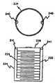 図5Aに示した実施例の場合、バッテリ104は好適には独自のバッテリ・ケース209内に収納され、バッテリ端子は(従来のAAバッテリと同様に)ケース209と一体の部品からなっている。このように、バッテリ104の(図5Aで見た)側部と左端部は例えば負のバッテリ端子のような一方のバッテリ端子210からなり、バッテリ104の右端部は例えば出力端子128として使用されるような正のバッテリ端子であってよい。有利なことには、このようなバッテリ・ケース209は導電性であるので、これをバッテリの一方の側から他方の側へと適切な回路ノードを接続するための、マイクロスティミュレータ100内の回路用の導電体として役立てることができる。より具体的には、図5Aに示した構造では、バッテリ端子210は器具のハウジング206内に格納された全ての回路のために接地点もしくはノードとして機能することができる。従って、電気回路の観点からは回路のアースに簡便に接続されているマイクロスティミュレータ100の左端部の電極112aからのステム212は、バッテリ104の左端部と簡便に接触できる。そこで、バッテリ104の右側の近傍、またはバッテリのリム上で、すなわちハウジング206の右端部内のバッテリ104の右側の(好適には例えばコントローラ106および刺激回路110のような器具の電力消費回路として実施されている)単数または複数個のICチップ216の近傍で、この同じ回路のアース接続を利用できる。このようにしてバッテリ104の導電性ケース209を利用することによって、器具100の右の回路を器具100の左側の電極112aと電気的に接続するために、バッテリ104の周囲に別個の配線、またはその他の導体を通したり取付ける必要がない。  In the embodiment shown in FIG. 5A, the