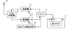 アンテナ共用機3は、CPU1からの送受切替制御信号に基づき、送信スロット時には送信機2から入力されるRF送信信号をアンテナ4に出力し、受信スロット時にはアンテナ4から入力される他局の送信データを含むRF受信信号を受信機5に出力する。アンテナ4はRF送信信号を外部に送信するとともに、RF受信信号を外部から受信する。  Based on the transmission / reception switching control signal from the CPU 1, the antenna duplexer 3 outputs an RF transmission signal input from the