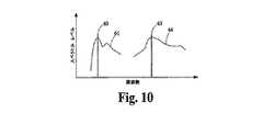図14は仮想的な時間音響心理学的マスキング閾値を示す。閾値68はスペクトル成分67の時間音響心理学的マスキング効果を表す。スペクトル成分67の左に対する閾値の部分は、前置時間マスキング特性か、或いはスペクトル成分の発生に先行するマスキングを表す。スペクトル成分67の右に対する閾値の部分は、後置時間マスキング特性か、或いはスペクトル成分の発生に続くマスキングを表す。後置マスキング効果は一般に前置マスキング効果の持続期間よりも充分に長い持続期間を有する。このような時間マスキング閾値はスケーリングエンベロープの時間形状を導くのに使用し得る。  FIG. 14 shows a virtual temporal psychoacoustic masking threshold. The