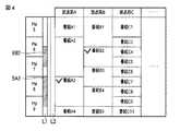 図5に示すように、番組ガイドがレーンL1、L2を含み、レーンL1が録画予約バーBB2、BA3を含み、レーンL2が録画予約バーBB3を含む。これにより、ユーザは、前提として2番組同時録画可能であること、番組A3と番組B3の重複時間帯にはもうこれ以上の録画を予約できないこと、番組A3と番組B3の重複時間帯以外の時間帯には1番組又は2番組の録画を予約することができることを容易に知ることができる。また、番組ガイド中の番組B2、A3、B3の夫々の欄には、録画予約されたことを示す録画チェックが表示される。 As shown in FIG. 5, the program guide includes lanes L1 and L2, lane L1 includes recording reservation bars BB2 and BA3, and lane L2 includes recording reservation bar BB3. As a result, the user can pre-record two programs at the same time, can no longer reserve further recording in the overlapping time zone of program A3 and program B3, and time other than the overlapping time zone of program A3 and program B3. It is easy to know that recording of one program or two programs can be reserved in the band. In addition, a recording check indicating that the recording is reserved is displayed in each column of the programs B2, A3, and B3 in the program guide.