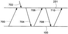コンピューティングデバイス100宛のパケットがバッファされていることをTIMが示す場合には、ネットワークインターフェースモジュール201は、起動していることを示すメッセージをアクセスポイントに送信する(線706)。メッセージを受信した後、アクセスポイント231は、バッファリングしたパケットをコンピューティングデバイス100に送信する(線708)。バッファ内にまだパケットが残っている場合、アクセスポイント231は送信される第1のパケット内に指示を添えて、すべてのパケットを送信する。送信される最後のパケットに、コンピューティングデバイス100に関してアクセスポイントのバッファ内にデータはもう残っていないことの指示が含まれる。すべてのパケットを受信した後、パケットがアクセスポイント231に送信され、ネットワークインターフェースモジュール201がドーズ状態に入っていることを示す(線710)。ネットワークインターフェースモジュール201は、送信すべき保留パケットがない場合にのみ再びドーズ状態に入る。送信するパケットがある場合、ネットワークインターフェースモジュール201はまず、すべての保留パケットを送信し、送信キューが尽きた後にはじめてドーズ状態に入るという通知をアクセスポイントに送信する。これは、ドーズ状態の間に、ネットワークインターフェースモジュール201がアクセスポイントまたはピアに送信するパケットをキューイングしていた場合について対処する。この処理は、コンピューティングデバイス100がアクセスポイント231に関連付けられている限り繰り返される。パケットを送信する場合、ネットワークインターフェースモジュール201は、パケットの宛先へルーティングするためにパケットをアクセスポイント231へ送信し、遅延スリープ時間のタイムアウトになるのを待つ。遅延スリープ時間が経過した後、ネットワークインターフェースモジュール201は、モジュール201がドーズ状態に入るというメッセージをアクセスポイント231へ送信し、その後モジュール201はドーズ状態に入る。  If the TIM indicates that a packet addressed to the