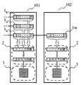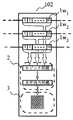 図の2つのマルチカラーユニット101は、上述したものと同等で、発光色としてR,G,Bの3種に対して各1個ずつ発光素子を用いた画素であり、これを1ドットとして表示部3は16×16ドットのマトリクスディスプレイである。モノクロユニット102は発光色が1種で白色発光のLED1個を1画素とし、16×16ドット配列されたものである。従来、この様なモノクロユニットは、1画素を1種類の発光色、1個のLEDで構成しているため、これに対応する表示データを転送するデータ格納手段も1つしか必要でなく、例えば1個のシフトレジスターを有していた。