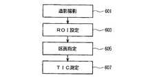 次に、ステージ607で、TIC測定を行う。TIC測定は画像処理部14のCPU140によって行われる。画像処理部14は、本発明における測定手段の一例である。CPU140は、画像メモリ156に記憶された画像について、指定された区画の画素値の平均値を求め、その経時的変化すなわちTICを表示部16にグラフ(graph)で表示する。  Next, at