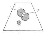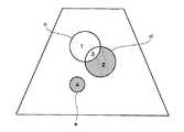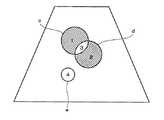 このような場合における区画指定の例を図13−27に示す。図13は区画1,3を指定した例である。これはROIcの指定に他ならない。図14は区画2,3を指定した例である。これはROIdの指定に他ならない。図15は区画1を指定した例である。これはROIcからROIdとの重複部分を除いたものに相当する。図16は区画2を指定した例である。これはROIdからROIcとの重複部分を除いたものに相当する。図17は区画1,2,3を指定した例である。これはROIdとROIcの論理和に相当する。図18は区画1,2を指定した例である。これはROIdとROIcの排他的論理和に相当する。  An example of partition designation in such a case is shown in FIGS. FIG. 13 shows an example in which