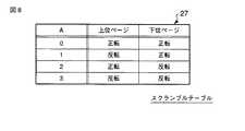 なお、データの読み出しの際には、外部から与えられたアドレスに従ってメモリセルからデータが読み出されると共に、MCU22は当該アドレスに対応したスクランブル方式をスクランブルテーブル27から読み出す。そして、読み出したスクランブル方式に応じて、読み出しデータを解読する。例えば、第3グループに属するワード線の下位ページデータを読み出す場合には、スクランブル方式は図8の通り「反転」であるから、MCU22は読み出しデータを反転させて外部へ出力する。このような読み出し方法を行うため、データのページ毎のコピーは、同一のグループに属するワード線間に制限される。  When data is read, data is read from the memory cell according to an address given from the outside, and the