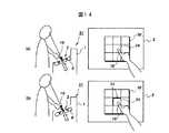 図4はこの第1の実施形態でのタッチパネル9に対する指先の状態を示す図であり、同図(a)は指先19がタッチパネル9に触れていない状態、同図(b),(c)はタッチパネル9に指先19が触れた状態を夫々示している。そして、同図(b)は指先19がタッチパネル9に軽く触った状態であり、同図(c)は指先19がタッチパネル9に強く押し込むようにして触った状態である。以下、指示手段として指先を例に説明するが、ペンやペン型の入力デバイスなどの他の入力手段であってもよい。