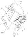 図2はカメラ本体の斜視図、図3はカメラ本体の外装ケースの上部材を取り外した状態を示す斜視図、図4は電子ビューファインダの斜視図である。電子ビューファインダ3は、カメラ本体2の外装ケースにおける上部材が外された状態で、カメラ本体2の外装ケースの下部材に設けられたシャーシに、ネジで螺着される。電子ビューファインダ3は、画像処理部5やコントローラ6が設けられる基板と、フレキシブル配線基板36によって接続される。このフレキシブル配線基板36は、画像データ用の信号線と、電源用の信号線を有する。これによって、電子ビューファインダ3は、画像処理部5やコントローラ6から出力される画像データを受け付けることが可能である。また、電子ビューファインダ3は、電源ボックス8に設けられる電池から電力供給を受ける。2. Configuration of Electronic Viewfinder FIG. 2 is a perspective view of the camera body, FIG. 3 is a perspective view showing a state in which an upper member of the exterior case of the camera body is removed, and FIG. 4 is a perspective view of the electronic viewfinder. The