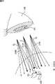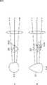 図24は、人間の目140の瞳孔141に入射する別の光線群の例を示す図である。同図には、図11と同様に、瞳孔141の中心を通る光線群A、瞳孔141の図中上端を通る光線群B2、または瞳孔141の図中下端を通る光線群C2が示されている。図24の光線群Aは、図11の光線群Aと同様に、瞳孔141の中心を通り注目点101に向かう光線310Aを中心とする光線群であるが、図24の光線群B2またはC2は、図11の光線群B1またはC1とは異なる。すなわち、図11において、光線群B1またはC1の中心となる光線110Bまたは110Cは、瞳孔141の図中上端、または瞳孔141の図中下端を通り注目点101に向かう光線であったのに対して、図24において、光線群B2とC2は、その中心となる光線310Bまたは310Cが、光線310Aとほぼ平行になっている。  FIG. 24 is a diagram illustrating an example of another light ray group that enters the