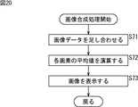 ここで、図20を参照して図12のステップS33の画像合成処理の詳細について説明する。ステップS71において、画像合成部43は、ステップS53で、被写界深度調整部42により読み出された画像データを足し合わせる。この足し合わせは、対応する画素同士で行われる。ステップS72において、画像合成部43は、ステップS71で足し合わせた画像データの画像における各画素値の平均値を演算する。そしてステップS73において、画像合成部43は、ステップS72で演算した画素値に基づいて、提示用画像を表示する。  Here, the details of the image composition processing in step S33 of FIG. 12 will be described with reference to FIG. In step S71, the
