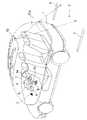 図6は、図5のカメラユニット10を分解した状態を示す。ケーシング11は、上部18と下部19とに分解され、その間にビデオカメラ12およびその撮像方向を変化させる方向変化機構20を収納する。上部18と下部19とを組合わせた状態では、雨水などが内部に浸入しないように密封して、内部を防水状態に保つことができる。