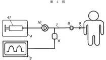 FIG. 4 is a schematic diagram of a blood pressure measurement system incorporating the fluid control device of the present invention, and simultaneously measures blood pressure while performing infusion therapy. As described below, the fluid control device of the present invention is included in the infusion therapy circuit. By providing this, the pressure fluctuation in the circuit due to the provision of the fluid control device does not occur, the pressure of the fluid flowing in the circuit can be detected more accurately, and the flushing operation can be completed in a short time. In addition, any alarm setting level of the alarm device provided in the circuit can be easily handled.
