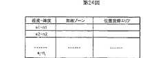 網側の移動通信制御局MSCは第1実施例(図1)と同一の構成を備え、その規則データベースRDBには図23に示す位置登録エリアの更新規則が保持されている。図23の位置登録エリア更新規則において、切替規則部3は任意の2地点間の経路に沿って存在する複数の交差点を通過するタイミングの最小、最大時間を規定している。各交差点は経路に沿って存在する複数の位置登録エリアのそれぞれに存在するのが好ましい。先頭の経度−緯度位置(e1−n1、e7−n7)は出発交差点、末尾の経度−緯度位置(e6−n6、e12−n12)は目的交差点である。位置登録制御部PRCは図24に示す変換テーブルを用いて、位置登録エリア更新規則における経緯度情報を無線ゾーン/位置登録エリア番号に図25に示すように変換して碁地局より移動局に報知する。