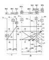 上記の第1電動機M1を制御するための第1コントローラ31と、第2電動機M2を制御するための第2コントローラ32とが設けられている。これらのコントローラ31,32は、例えばインバータを主体として構成され、それぞれに対応する電動機M1,M2とを電動機として機能させ、あるいは発電機として機能させるように制御し、併せてそれぞれの場合における回転数やトルクを制御するように構成されている。また、各電動機M1,M2は、各コントローラ31,32を介して蓄電装置33に接続されている。この蓄電装置33は、各電動機M1,M2に電力を供給し、また各電動機M1,M2が発電機として機能した場合に、その電力を充電して蓄える装置であって、二次電池(バッテリ)およびキャパシタから構成されている。  A
