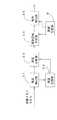 ラインセンサ21、22は、それぞれレンズ23、24の焦点距離fに配置されている。レンズ23、24が位置する平面から距離aにある対象物の像が、ラインセンサ21ではレンズ23の光軸からX1ずれた位置に形成され、ラインセンサ22ではレンズ24の光軸からX2だけずれた位置に形成されるとすると、レンズ23、24の面から対象物20までの距離aは、三角計測法の原理により、a=B・f/(X1+X2)で求められる。 The line sensors 21 and 22 are disposed at the focal lengths f of the lenses 23 and 24, respectively. An image of an object at a distance a from the plane on which the lenses 23 and 24 are located is formed at a position shifted by X1 from the optical axis of the lens 23 in the line sensor 21, and shifted by X2 from the optical axis of the lens 24 in the line sensor 22. If it is formed at a certain position, the distance a from the surfaces of the lenses 23 and 24 to the object 20 is obtained by a = B · f / (X1 + X2) according to the principle of the triangulation method.