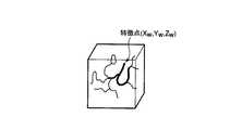 次に、3次元ワークステーション22のディスプレイに、3Dデータが表示され、この3D画像上で臨床学的に同じ特徴点が操作者により又は画像処理により自動的に指定される(図4)。この3Dデータ上の特徴点の座標(xW,yw,zw)は、3Dデータの座標系で表現されている。なお、3D画像上で特徴点を指定することには限定されず、3Dデータを2次元に投影し、その投影画像上で特徴点を指定してもよい。この際、2方向からの投影画像を生成し、それぞれの投影画像上で特徴点を指定するようにしてもよいし、1方向からだけの投影画像を生成し、その投影画像上で特徴点を指定して、この1点から奥行き方向(投影方向)に沿って3Dデータの値を追跡し、当該臨床学的な特徴点に対応する予め設定されたしきい値を超過した点の3D上の特徴点としてその3次元の座標を求めるようにしてもよい。