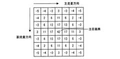 図4は、空間フィルタ処理部17において用いられるフィルタを示す説明図である。この図に示すように、本実施形態では、注目画素を中心とする7画素×7画素のフィルタを用いている。具体的には、空間フィルタ処理部17は、主走査方向7画素×副走査方向7画素(7ライン)の画像データを信号処理回路50から入力され、この入力された画像データにおける各画素と、これら各画素に対応するフィルタ係数とを乗算し、各画素についての乗算結果の総和を算出し、算出した総和を所定値(フィルタ内の各画素についてのフィルタ係数の総和に応じて設定される。本実施形態では186。)で除算した値を注目画素のフォルタ処理結果とする。  FIG. 4 is an explanatory diagram showing a filter used in the spatial