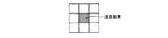 膨張処理部14cは、注目画素を含む主走査方向3画素×副走査方向3画素(3ライン)の領域分離信号を信号処理回路50から入力され、図5に示すように、この入力された領域分離信号における注目画素の周囲8画素の値を参照し、これら8画素の中に文字領域と判定された画素が1画素でも存在する場合、この注目画素を文字領域とする膨張処理を各画素について行う。また、膨張処理部14cは、膨張処理を施した領域分離信号を信号処理回路50に入力信号2として入力する。  The