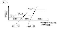 (4)リスクポテンシャルRPの領域は、リスクポテンシャルRPに対する複数の領域の長さを、リスクポテンシャルRPに応じて変更することもできる。具体的には、図17に示すように、各領域1〜3において制御反発力Fcが変化しないフラット領域の長さL1〜L3を、リスクポテンシャルRPが高い領域ほど小さくする(L1>L2>L3)。これにより、リスクポテンシャルRPが高い場合に速やかに制御反発力Fcが増加するので、運転者は制駆動力および操作反力の増加、すなわちリスクポテンシャルRPが高まっていることを直感的に認識することができる。なお、フラット領域の長さL1〜L3の代わりに、各領域1〜3の範囲(0≦RP<RP_Th1、RP_Th1≦RP<RP_Th2、RP_Th2≦RP<RP_Th3)を、リスクポテンシャルRPに応じて変化させることもできる。この場合も、フラット領域の長さLを変化させる場合と同様の効果を得ることができる。