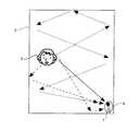 まず、残響パターンに含まれる初期反射成分と拡散残響成分とについて図2、及び図3を用いて説明する。図2は、室内で発生した音が反射する様子を模式的に示す図である。図3は、環境中に設置されたマイク1で検出された信号の一例を示す図である。図3において、横軸は時間、縦軸は信号のパワーを示している。図3では、インパルス応答計測をしたときの計測信号の波形が離散的に示されている。  First, the initial reflection component and the diffuse reverberation component included in the reverberation pattern will be described with reference to FIGS. 2 and 3. FIG. 2 is a diagram schematically illustrating how the sound generated in the room is reflected. FIG. 3 is a diagram illustrating an example of a signal detected by the