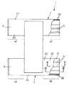 図9もまた、この発明の実施態様の一例を示す図2と同様な図である。ただし、このおむつ1は、図1の如きパンツ型のものではなくて開放型のものであって、図2のそれと同じように形成された胴周り部材2と股部部材3とを有し、胴周り部材2の外面シート21には複数のひだ41が形成されているが、後胴周り被覆域7の両側縁部12には、おむつ1の外側へ向かって延びるテープファスナ62が取り付けられている。おむつ1を着用するときには、前後胴周り被覆域6,7を着用者の胴周りに当てた後に、これら両胴周り被覆域6,7の少なくとも一方を胴周り方向へ伸長しながらテープファスナ62を前胴周り被覆域6の外面シート21に対して剥離可能に止着する。テープファスナ62は、その内面63に粘着剤が塗布されているものでもよいし、外面シート21を形成している不織布または外面シート21に設けられるターゲット域に対して着脱可能な複数のフックを有するメカニカルファスナのフック部材が取り付けられているものであってもよい。  FIG. 9 is also a view similar to FIG. 2 showing an example of the embodiment of the present invention. However, the