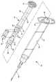特許文献3から特許文献5には、歯またはねじ山(ridge)を有するプランジャロッドと、歯またはねじ山と係合するロックエレメントとを持つ使い捨て注射器が開示されている。また、これらの注射器のロック部材も外方に延在する歯または突起物を含み、これらの歯または突起物は注射器外筒の内側表面と係合する。それらの注射器のプランジャロッドは、注射器外筒の中へ流体を引き込むために後退可能である一方、ロックエレメントは静止したままである。プランジャロッドが末端側に移動することによって流体が吐出され、ロック部材がプランジャロッドとともに末端側に移動することで更なるプランジャロッドの後退が阻止されるようになる。 U.S. Pat. Nos. 5,098,086 and 5,037,037 disclose disposable syringes having plunger rods having teeth or ridges and locking elements that engage the teeth or threads. These syringe locking members also include outwardly extending teeth or protrusions that engage the inner surface of the syringe barrel. The plunger rods of those syringes can be retracted to draw fluid into the syringe barrel while the locking element remains stationary. When the plunger rod moves to the distal side, the fluid is discharged, and when the lock member moves to the distal side together with the plunger rod, further plunger rod retraction is prevented.