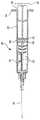 使用者側の一切の追加行為なしで、さらなる使用が自動的に不能になる使い捨て皮下注射器が必要である。そのような注射器の1つが特許文献1に開示されている。この特許文献1に開示された注射器には、注射器外筒に設けられたロックエレメントが含まれている。そのロックエレメントは、注射器外筒の内面と係合し、近位端側で外側に向く棘(barb)と、内側に向く駆動エッジとを含み、駆動エッジは、ストッパが前進するときにプランジャロッドと相互作用してロックエレメントを外筒に沿って移動させるのに適したものとなっている。プランジャロッドは棚部を含み、この棚はロックエレメントのおおよその長さである支持壁の基端側からの距離に位置している。ロックエレメントの駆動エッジは棚部と係合し、これによりロックエレメントがプランジャロッドおよびストッパと共に確実に端部へ移動する。同様のロックエレメントを含む注射器は特許文献2にも開示されている。 There is a need for a disposable hypodermic syringe that automatically disables further use without any additional action on the part of the user. One such syringe is disclosed in US Pat. The syringe disclosed in Patent Document 1 includes a lock element provided on a syringe outer cylinder. The locking element engages the inner surface of the syringe barrel and includes a barb facing outward on the proximal end side and a driving edge facing inward, the driving edge being a plunger rod when the stopper is advanced Is suitable for moving the locking element along the outer cylinder. The plunger rod includes a shelf that is located at a distance from the proximal side of the support wall, which is the approximate length of the locking element. The drive edge of the locking element engages the shelf, which ensures that the locking element moves with the plunger rod and stopper to the end. A syringe including a similar locking element is also disclosed in US Pat.
