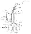 なお、フレームと支持体30との間には、従来公知の旋回機構、上下揺動機構が設けられるとともに、支持体30の旋回状態および上下揺動状態を維持するための摩擦機構が設けられ、したがって、使用者がディスプレイ装置12をあるいは支柱24を所望の姿勢に旋回あるいは上下揺動させたのち手を離すと、フレームに対する支柱24の角度が保持されるように構成されている。The