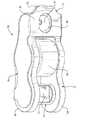 クリップ側壁77と79は、図2と7にだけ完全に示している接続部分81により連結されており、接続部分81は、概ねU字の形状に折り曲げられて(図3も参照)、ロッカーアーム57の接続部分63に密着する保持用タブ83を有している。保持用タブ83は、クリップ部材75をロッカーアーム57に相対的に定位置に保持する役割を持つ構造の一部であることが、クリップ部材75の後の説明から理解されるであろう。保持機能を提供するそれ以外の構造については、後で説明する。この接続部分81は、球形プランジャの部分39の下側の切れ込みに長穴84の両側が係合するまで長穴84の両側をわずかに変形させることで、接続部分81が球形プランジャ部分39上で摺動する大きさの長穴84を定めている。その係合以降、球形プランジャ部分39とロッカーアームアセンブリ55は、バルブ制御システム13のシリンダヘッド11へのその後の組み付けに備えて、相互に前述の「組み立てられた」位置を維持する。  The