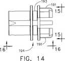 好ましくは、上記の回転ノブ190は拡大部分または外側ノブ192、内側ノブ194、およびこれらを貫通している軸方向のボア196を有している。内側ノブ194は外側ノブ192のキーウェイ189に協同的に取り付けるためのキー191を有している。外側ノブ192は交互に置かれている長手方向に沿う隆起部197および溝部198を有しており、これらは外科医による回転ノブ190および細長い部材150の配向を容易にする。この回転ノブ190の軸方向のボア196は細長い部材150の基端部上に適当に嵌合するように構成されている。