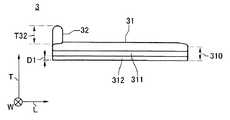 基体部31は、長手方向Lに沿って伸びる棒状体であって、長手方向Lに交差する幅方向Wの両側に側面310を有している。側面310のそれぞれは、高さ方向Tでみた下側に凹部311と、凸部312とを有している。  The