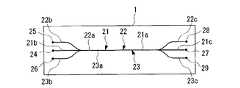 大流路21は、集合部21aと集合部21aの図示左側に存する導入部21bと集合部21aの図示右側に存する流出部21cとからなり、小流路22、23は、各々集合部22a、23aと集合部22a、23aの図示左側に存する導入部22b、23bと集合部22a、23aの図示右側に存する流出部22c、23cとからなっている。