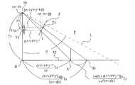 図10に示す面Fにおいて、点V−Vz間の距離は、(xv2+yv2)1/2で表され、点V1z−V1間の距離は(xv2+yv2)1/2+dhで表される。また点Oc−点Vz間の距離は上述したようにzvであり、点Oc−点V1z間の距離はzv−dvで表される。ここで、三角形の相似により、点H−A間の距離は、((xv2+yv2)1/2/zv)Tzで表される。点H−A1間の距離は、(((xv2+yv2)1/2+dh)/(zv−dv))Tzで表される。点A及びA1が、それぞれ画素V及びV1によって撮像されているので、点A−A1間の値を求めると、これが1画素当たり軸Zwv方向にどれだけの長さに対応しているかの分解能を表している。この分解能は、((zvdh+(xv2+yv2)1/2dv)/zv(zv−dv))Tzで表される。dは予め判明している画素間隔とカメラ設置角度から求まる値であるので、dh、dvは予め計算しておくことができる。従って、分解能は、光線ベクトル(xv、yv、zv)さえ求まれば、容易に求めることができる。In the plane F shown in FIG. 10, the distance between the points V-Vz is represented by (xv2 + yv2 )1/2 and the distance between the points V1z-V1 is represented by (xv2 + yv2 )1/2 + dh. Is done. Further, the distance between the point Oc and the point Vz is zv as described above, and the distance between the point Oc and the point V1z is represented by zv-dv. Here, due to the similarity of triangles, the distance between the points HA is represented by ((xv2 + yv2 )1/2 / zv) Tz. The distance between the points H-A1 is represented by ((((xv2 + yv2 )1/2 + dh) / (zv-dv)) Tz. Since the points A and A1 are imaged by the pixels V and V1, respectively, when the value between the points A and A1 is obtained, the resolution of how long this corresponds to the axis Zwv direction per pixel is obtained. Represents. This resolution is represented by ((zvdh + (xv2 + yv2 )1/2 dv) / zv (zv−dv)) Tz. Since d is a value obtained from the pixel interval and the camera installation angle that are known in advance, dh and dv can be calculated in advance. Therefore, the resolution can be easily obtained as long as the light vector (xv, yv, zv) is obtained.