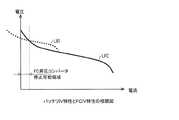 そこで、バッテリ13の出力電圧と燃料電池11の出力電圧の相関について、図7Aおよび図7Bに基づいて説明する。両図では、ともにバッテリ13のIV特性(図中、点線LBTで示される。)と、燃料電池11のIV特性(図中、実線LFCで示される。)とが示されている。ここで、図7Aで、燃料電池11のIV特性LFCがバッテリ13のIV特性LBTより高い領域においては、FC昇圧コンバータ12を停止させたとしてもバッテリ13の出力電圧がFC昇圧コンバータ12の出口電圧より低い状態となるので、バッテリ昇圧コンバータ14が昇圧動作可能となり、以てバッテリ13からモータ16への電力供給ができる。従って、この状態ではFC昇圧コンバータ12の動作停止が許容される。一方で、バッテリ13のIV特性LBTが、燃料電池11のIV特性LFCより高い領域においては、FC昇圧コンバータ12を停止させるとバッテリ13の出力電圧がFC昇圧コンバータ12の出口電圧より高い状態となるので、バッテリ昇圧コンバータ14の昇圧動作による燃料電池11とバッテリ13の出力分配制御が不可能となる。従って、この状態ではFC昇圧コンバータ12の動作停止が許容されない。  Therefore, the correlation between the output voltage of the