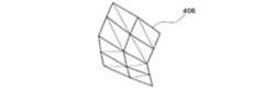 そして、接触位置404を中心とした箇所を静的オブジェクト402から切り取る際、その切り取り箇所の向きを当該ベクトル409に従って決定する。その後、切り取ったペンキ跡オブジェクト406を構成するポリゴンを細分割し(図17参照)、そこにペンキ跡を示すテクスチャ画像をマッピングする。このとき、ペンキ跡を示すテクスチャ画像を予め複数用意しておき、それぞれを上記なす角θの範囲と関連づけて記憶しておく(図18参照)。そして、ペンキ跡オブジェクト406には、上記のようにして算出したなす角θに応じたテクスチャ画像を選択的に読み出し、マッピングする(図19参照)。その後、ペンキ跡オブジェクト406を元の静的オブジェクト402における弾丸オブジェクト400の接触位置に配置する。  Then, when a portion centered on the