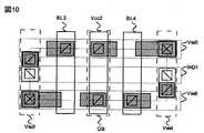 図9および図10に実施例5のSRAMセルのレイアウトMC4を示す。図9および図10で使用される記号の説明を図11に示した。実施例5のメモリセルMC4は実施例1のメモリセルMCと比べて、配線構造が異なる。