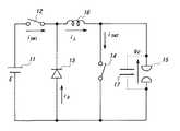 磁気エネルギー蓄積用インダクタ16を流れる電流iL が所定の電流値I pに達した時刻t1 において第1および第2のスイッチ12および14をターンオフさせる(図5A,B)。この時、両スイッチのターンオフは必ずしも同時である必要はなく、どちらかが前後しても差し支えないが、ここでは説明の便宜上同時にターンオフしたものとして説明する。第1および第2のスイッチ12および14のターンオフにより開始される第2のモードIIでは、磁気エネルギー蓄積用インダクタ16の電流はフリーホィールダイオード13を含む分岐回路および負荷15(キャパシタ17)へそれぞれ転流する。すなわち、第1のモードIの間に磁気エネルギー蓄積用インダクタ16に蓄えられた磁気エネルギー(LIp2/2)によりインダクタ16→キャパシタ17→フリーホィールダイオード13のループで共振動作を開始する。